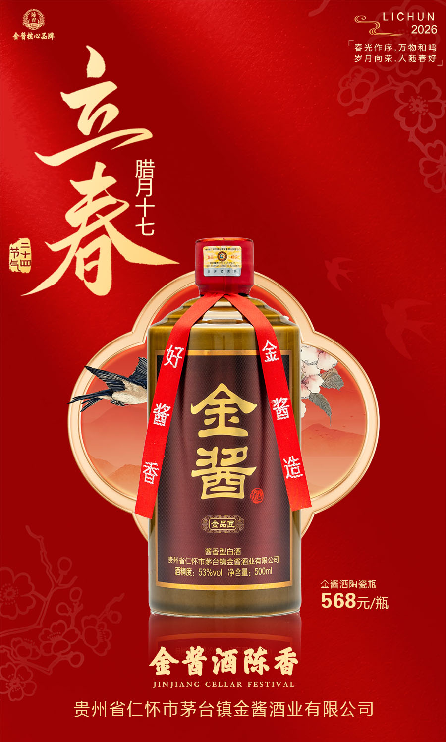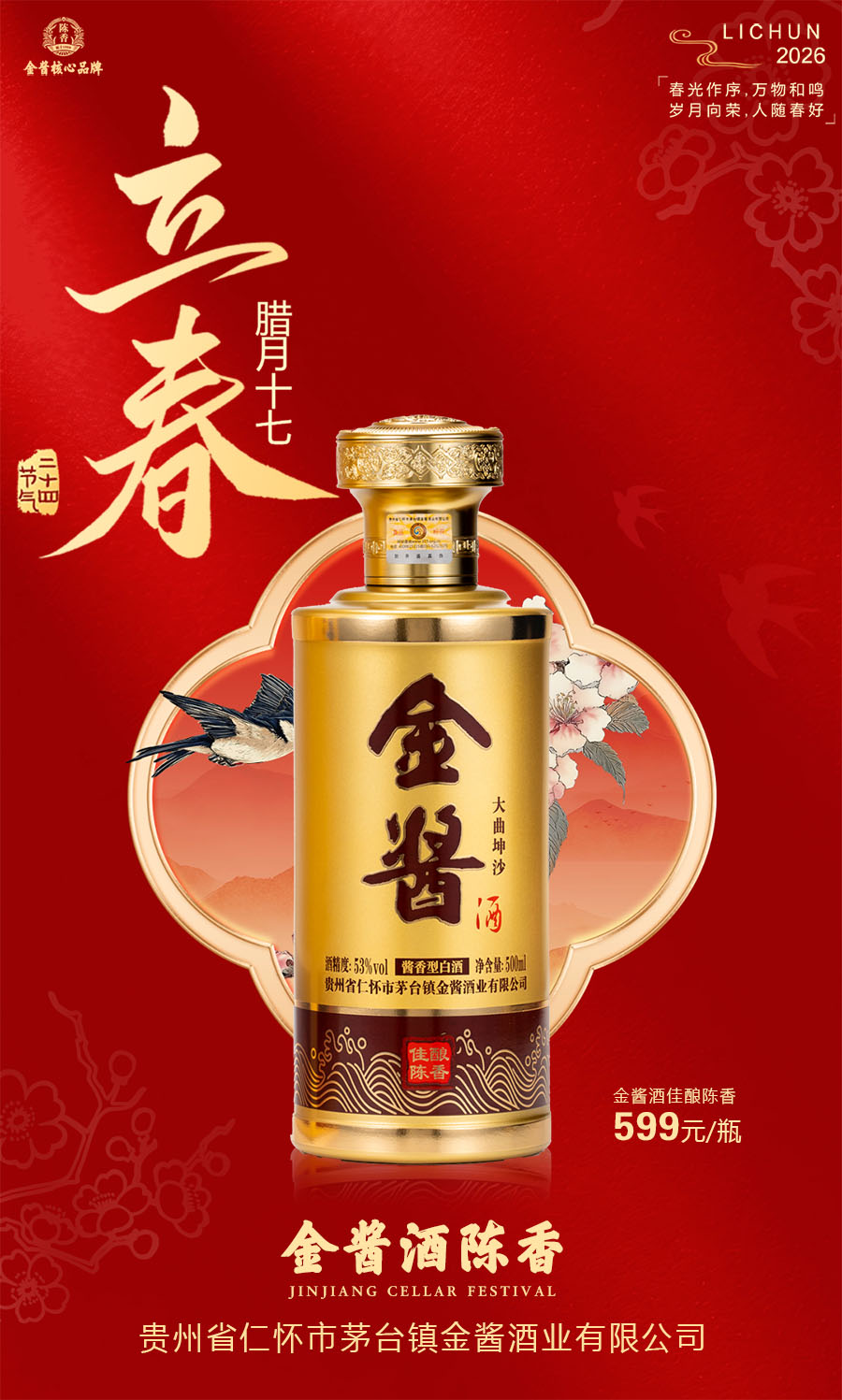 立春启新,万物生香🌱金酱酒陈香,茅台镇 53 度纯粮坤沙佳酿,时光沉淀醇厚陈韵,以酒迎春,敬岁月温柔,启一年顺遂