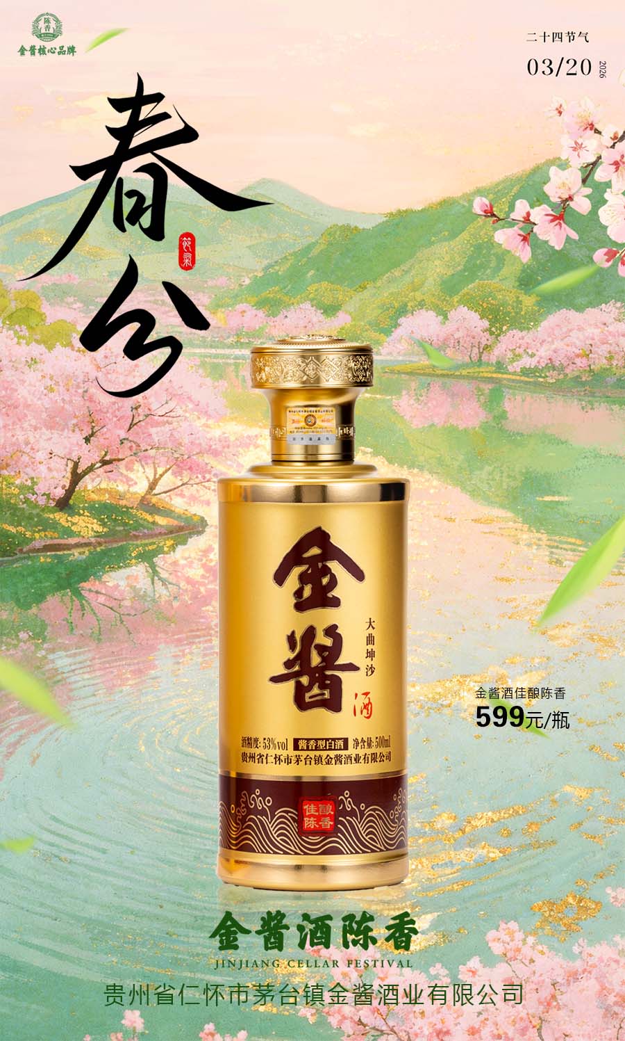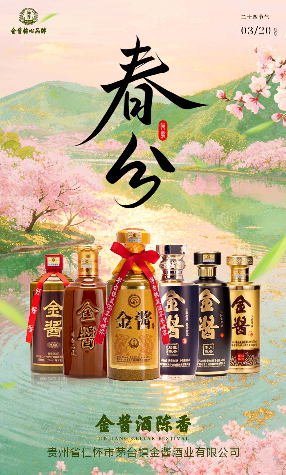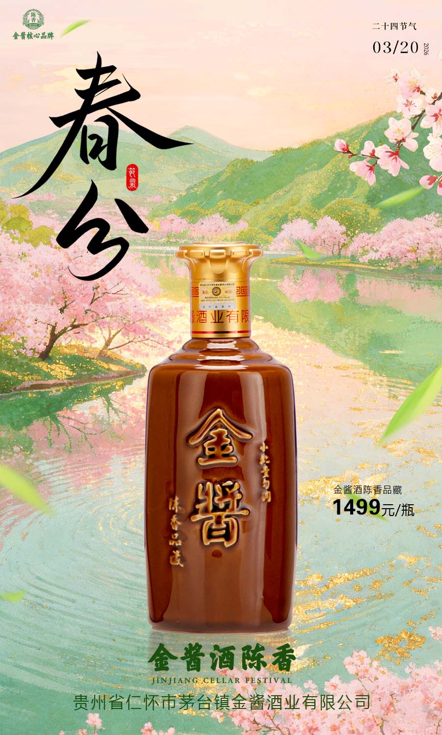 春风拂面,春分启序,天地皆得平和。金酱酒陈香以时光淬炼醇厚酱香,绵柔回甘,韵致悠长。举杯共赏春色,醉享人间好时节。