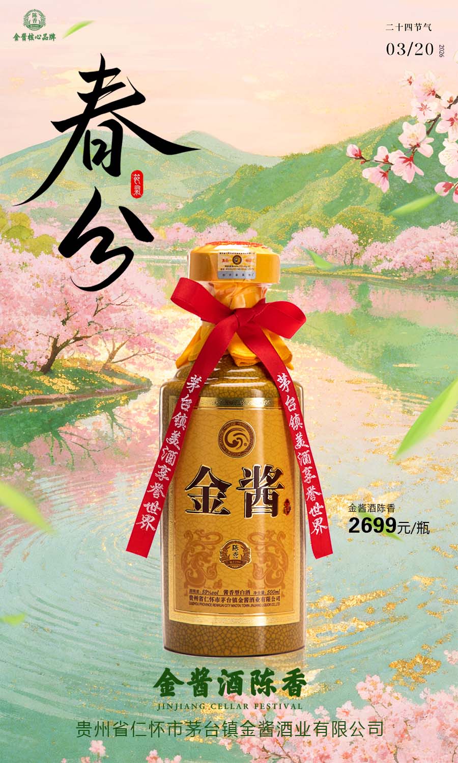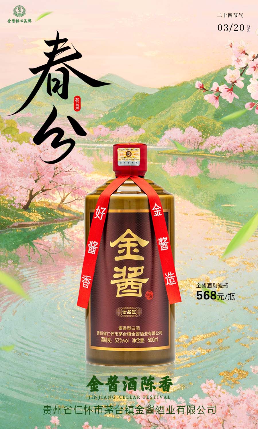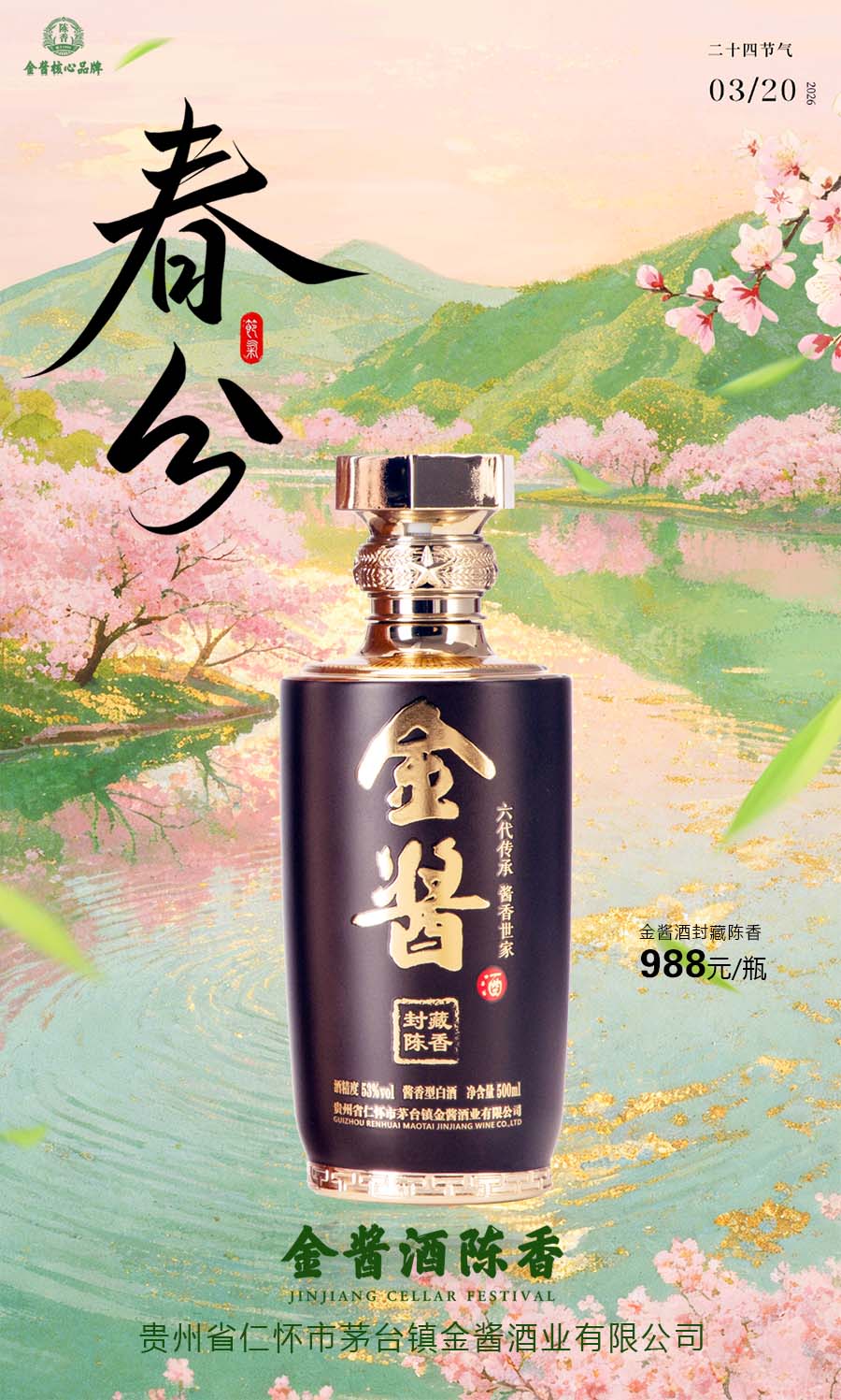 春风拂面,春分启序,天地皆得平和。金酱酒陈香以时光淬炼醇厚酱香,绵柔回甘,韵致悠长。举杯共赏春色,醉享人间好时节。